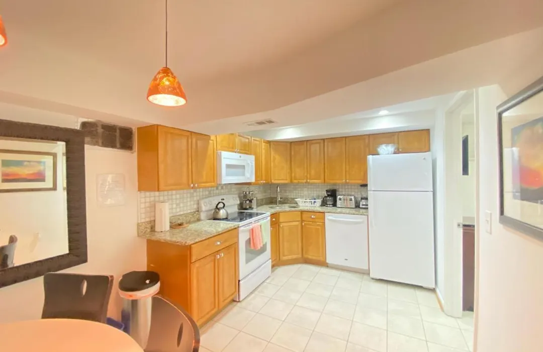 Dotato di un angolo cottura attrezzato, l'appartamento Comfy Basement Home 2 Bdrm1Den 3Queen Beds mette a disposizione degli ospiti anche una zona pranzo all'aperto per gustare i propri pasti. L'aeroporto più vicino è Nazionale di Washington Ronald Reagan, a 15 km da questa struttura.